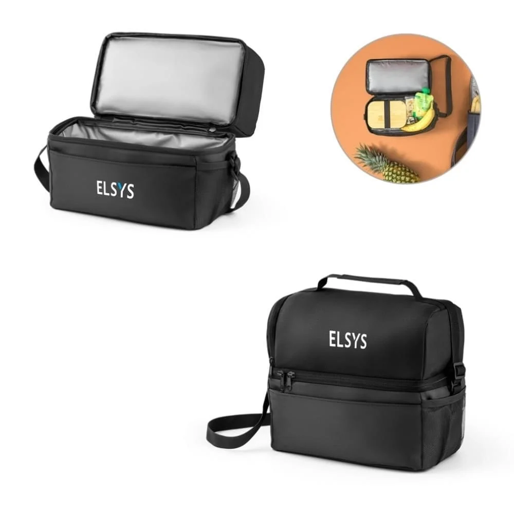 Bolsa Térmica em 300D e 840D Jacquard com interior impermeável em PEVA para facilitar a higienização. Contém 2 compartimentos principais, 1 bolso frontal com fecho e 1 bolso lateral em tela mesh. Alça em webbing ajustável e pega de mão reforçada. A bolsa térmica tem capacidade até 7 L. Certificação EU Food Grade